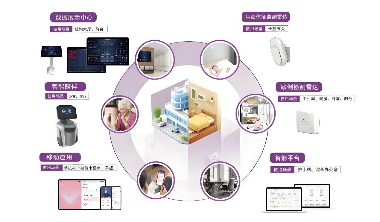 公海jcjc设备智慧康养系统面向机构养老、社区养老、居家养老等场景,以AI算法为核心,融合陪伴机器人、生命体征、跌倒检测雷达及云平台,提供全方位智慧康养服务。
