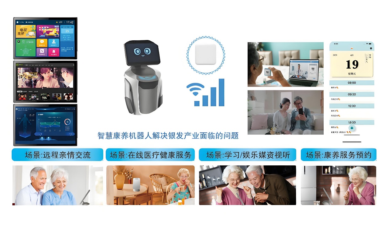 ◆ 环境安全检测实时监控卧室、厨房等场景风险,结合一键呼救(实体按键 / 语音 / 触屏)与远程监护平台,实现 7×24 小时安全兜底,尤其针对独居老人或行动不便人群提升应急响应能力;智能陪伴机器人提供语音交互、远程亲情交流、用药提醒(多模式通知)、膳食指导等功能,覆盖机构养老、社区养老、居家养老场景,满足老年人社交、健康管理及生活便利需求。